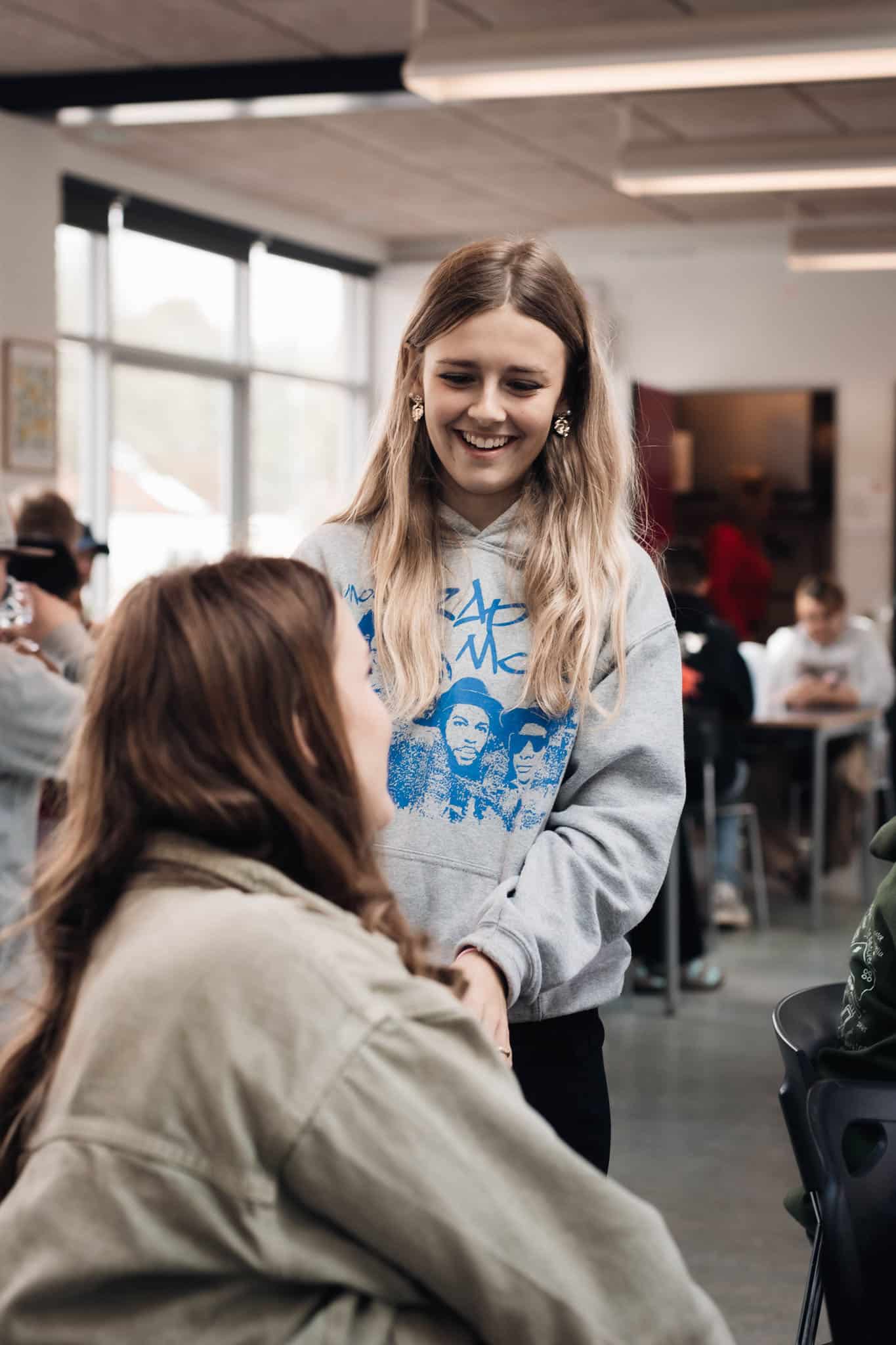 Hos os er fællesskabet noget, vi bygger sammen – hver dag. Vi arbejder ud fra værdierne gensidig respekt og ordentlighed, og vi har fokus på, at du kan koble dine interesser til undervisningen på linjefagene. Vi er optaget at skabe rammen for at du får succesoplevelser, og udvikler dig både fagligt og personligt.