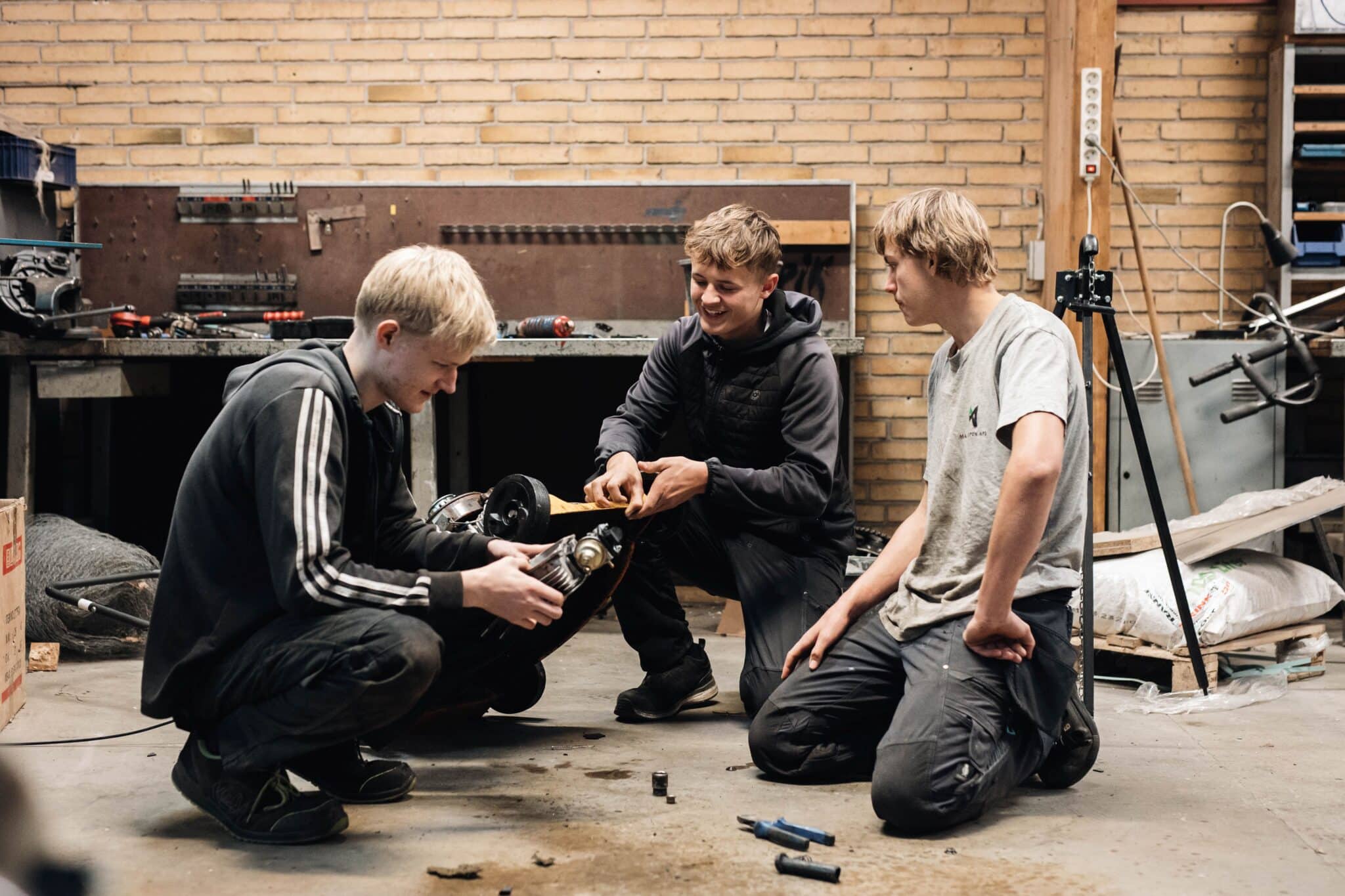 Vi arbejder i metal, motorer og teknik i forskellige perioder i løbet af efterskoleåret. Vi har en Bocart bane som du kan prøve kræfter med, hvis du er til fart og spænding. En del af arbejdet er også løbende reparation og vedligehold af skolens Bocarts.